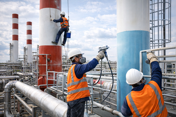 - Industrial Chimneys: Using special heat-resistant paint for tall stacks.